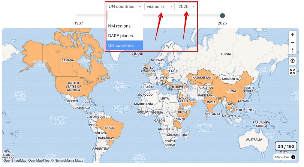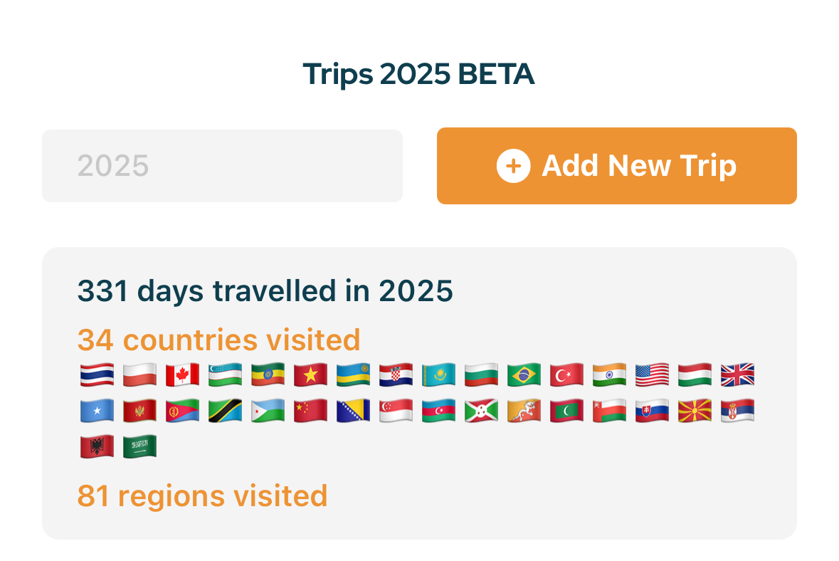 We understand that entering visits with precise dates can be difficult and time-consuming. That is why, for now, this feature is enabled only for 2025, making it achievable while delivering a clear and tangible result: your annual travel statistics.