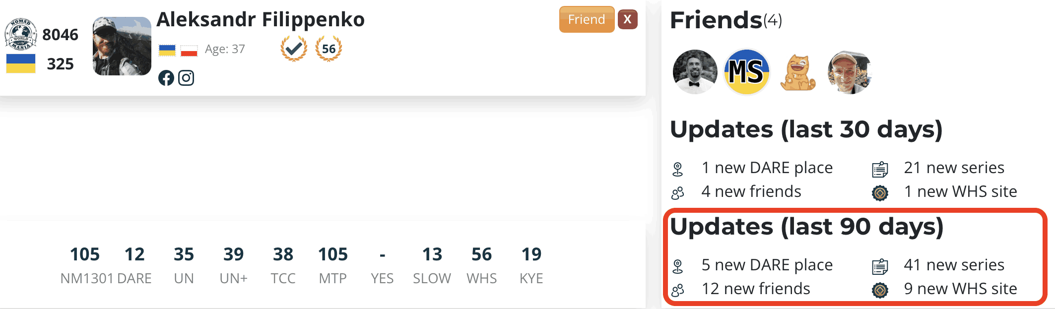 From now on your can see detailed travel updates during the last 30 days including visited new regions, series, added friends and photos.