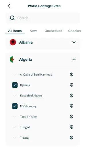 - Series – all Series categories, including World Heritage Sites, split into groups on top of the screen (you can slide left-right this menu)