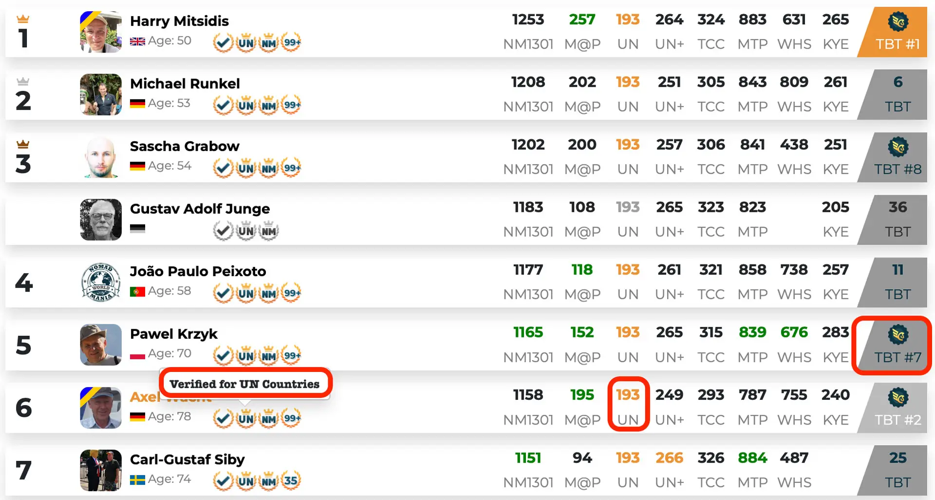 In the photo above, looking to the right, you will also see the TBT (The Biggest Traveller) badges which are awarded to fully verified travellers across nearly all lists. Verification for this is by invitation only given the amount of work required for this; we have successfully verified 9 of the Top 11 on the TBT list.