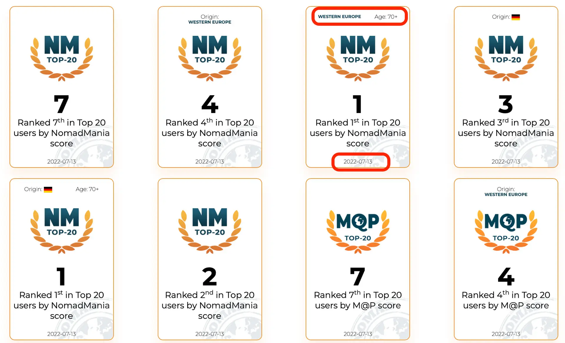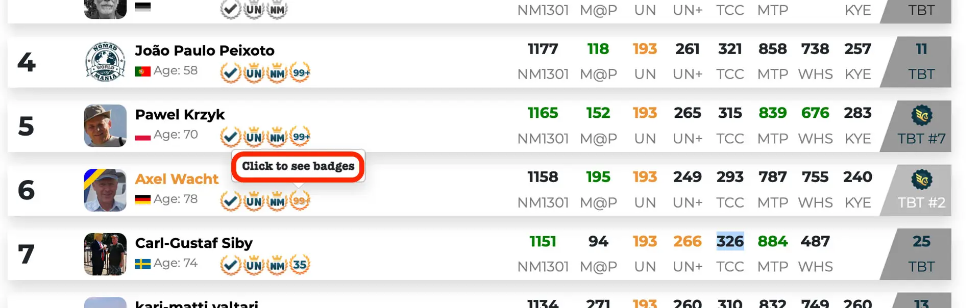 Achievement badges are given across categories, such as Series, but are also sorted by age groups and nationality, giving a much larger field of eligibility for them – in fact around 40% of our users have at least one badge. The more you fill in your profiles, the more likely you will get a badge, so take the time to review where you have been, especially focusing on those Series! Have fun!