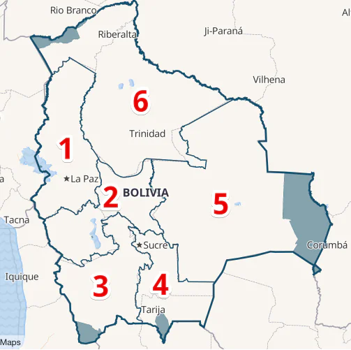 Changes apply to better reflect country’s complex geography grouping Oruro with Potosi within Altiplano South region while keeping culturally distinct Cochabamba, Chuquisaca and Tarija which is a new one.