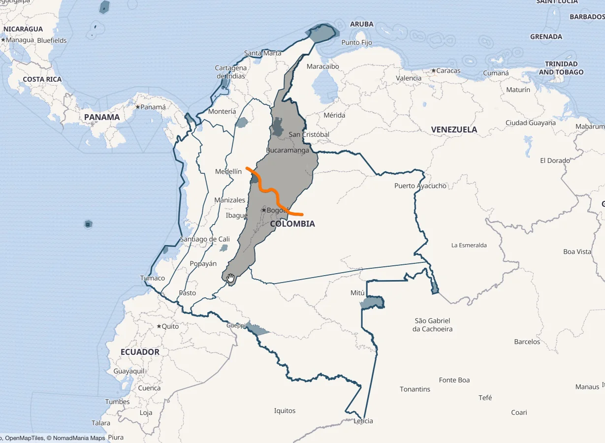 Greater Bogota and round region is split from Andes Northeast.