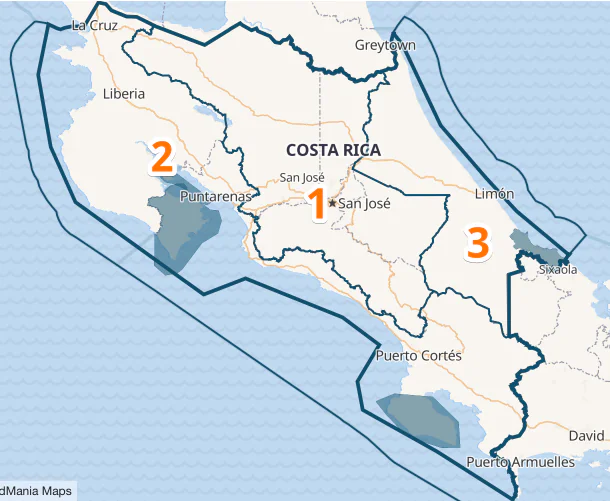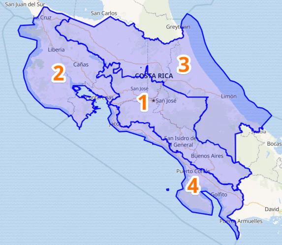 We made some changes reflecting the country’s geography and added a new region Pacific South (Quepos, Puerto Jiménez).
