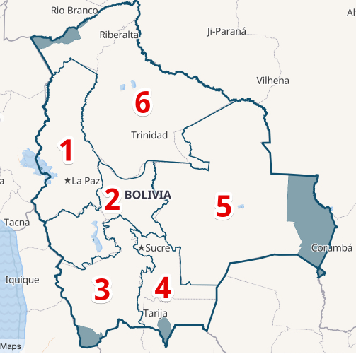 Changes apply to better reflect country’s complex geography grouping Oruro with Potosi within Altiplano South region while keeping culturally distinct Cochabamba, Chuquisaca and Tarija which is a new one.