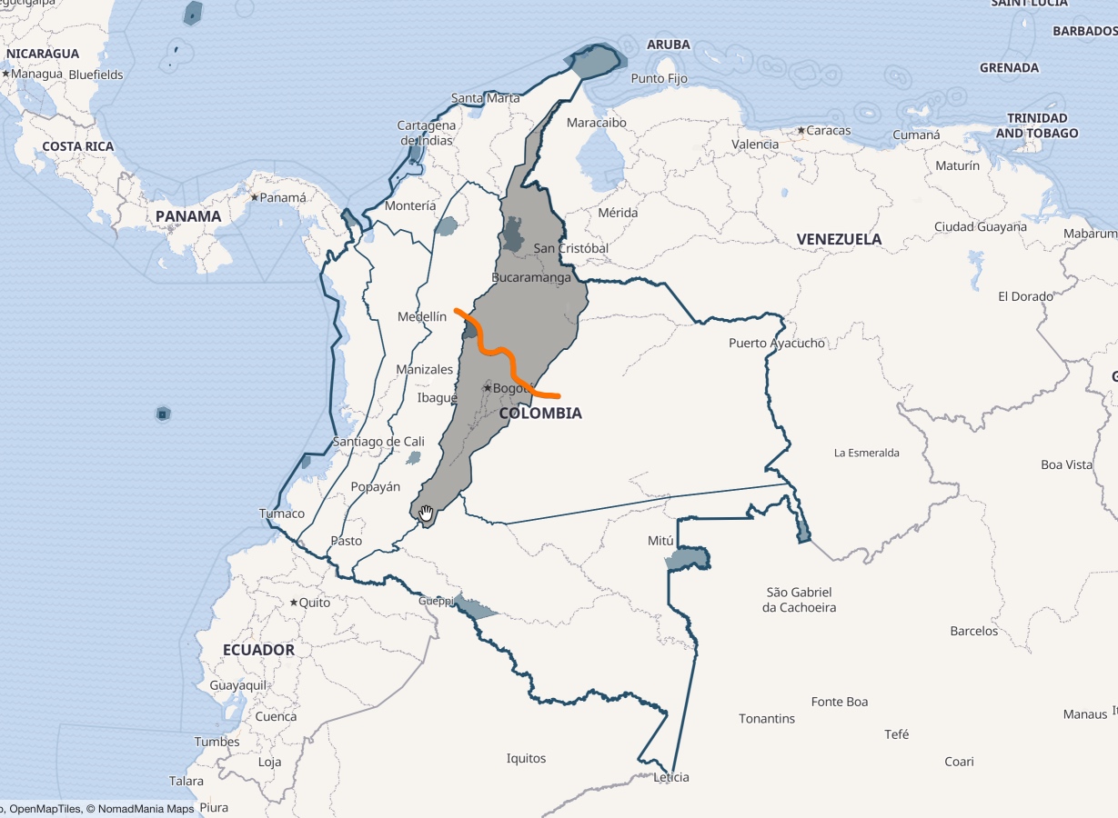 Greater Bogota and round region is split from Andes Northeast.