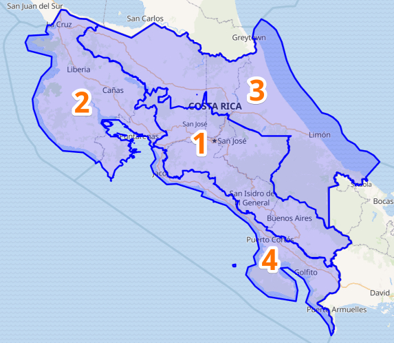 We made some changes reflecting the country’s geography and added a new region Pacific South (Quepos, Puerto Jiménez).