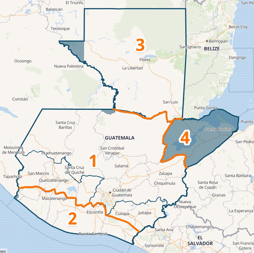 Changes in Guatemala reflect the country’s geography with Caribbean Coast becoming a new regions while some border adjustments between the Highlands and the Pacific Coast.