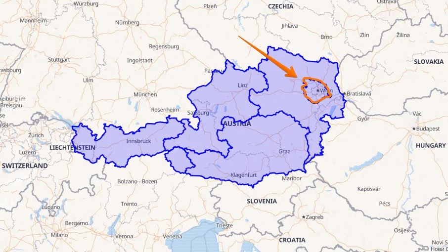 A new region, Greater Vienna, has been carved out of the former region Austria – Eastern (Vienna, Lower Austria, Burgenland).