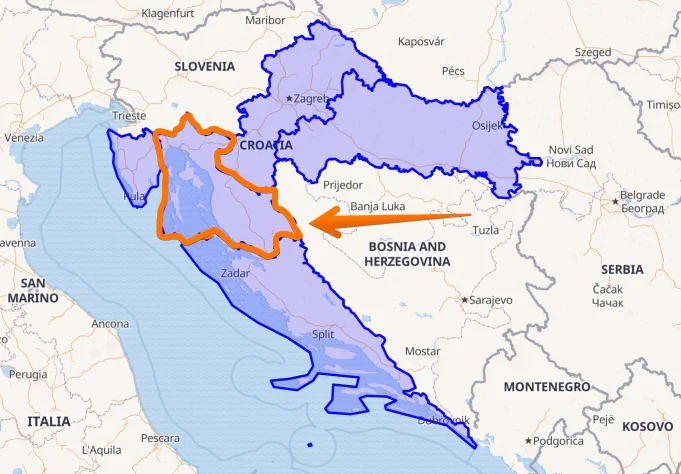 The new region is Kvarner which occupies the central part of the Adriatic coast between Istria and Dalmatia.