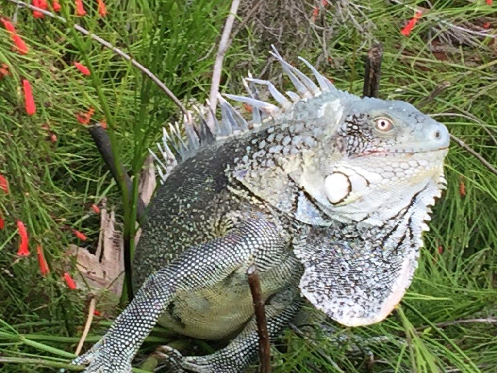 Marooned by the steps, I’m spending my days lounging by the pool., the water in which is dotted with leaves. It may or may not get strained in the morning. The pump is on semi strike. Hot sun, cloud, drizzle, heavy but short showers, in rotation, are the order of the day. Tiny anole lizards skitter by, peeping round corners (they always skitter), hummingbirds hover in the undergrowth and butterflies skip around the bougainvillea.