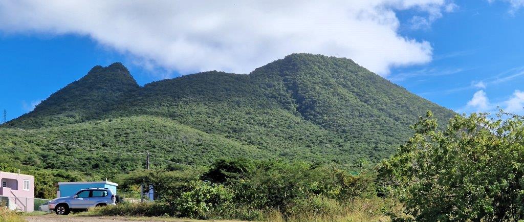 North, across the island centre and round the airport, to a viewpoint in the hills, in the north-west. These are the smaller summits of Signal Hill/Little Mountain (or Bergje) and Boven Mountain. From here, Quill consumes the whole of the horizon.