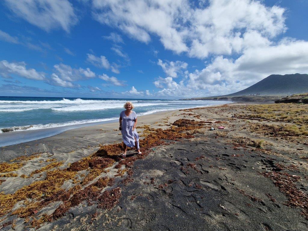 Then, we drop down to Zealandia Beach, where the turtles (three species) brave the Atlantic rollers and come to nest. But not today. It’s wild, windy and strewn with weed. Swimming not allowed.