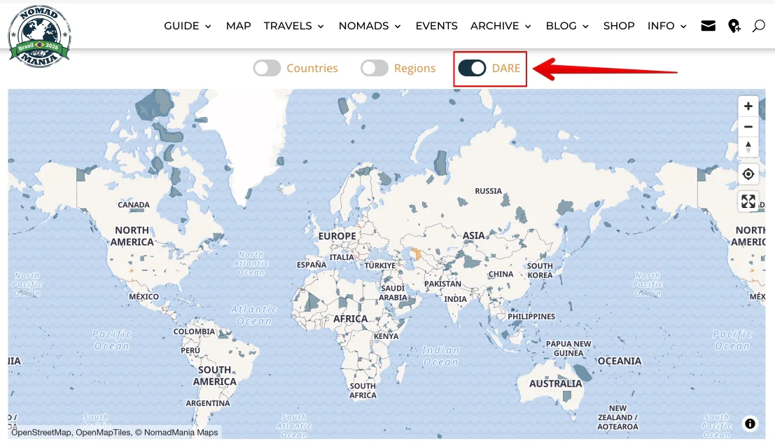 For now, we will rest at this number of DARE regions for the next year or so, as we focus on other geographical projects. We continue to elicit suggestions from you for this list for a future time when we continue its development. Meanwhile, take the time to discover the quirky world of NomadMania’s unique DARE regions by ensuring you fill in the ones you have DAREd visit!