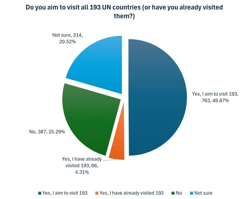 A common thread among the majority of respondents, those aiming for UN 193 and those who don’t aspire to such a goal, is a deep-rooted passion for travel, exploration, and the desire to experience different cultures, landscapes, and cuisines. This passion often stems from childhood dreams or early experiences of travel.