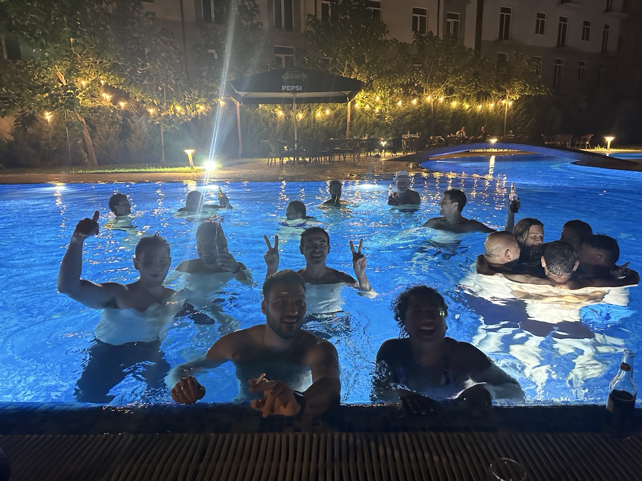 Not everything was scripted though – very far from it. At the end of our first gala, when special certificates were awarded to local partners and to the only traveller who has participated in all five NomadMania Conferences, JoAnn Schwarz, the mood quickly shifted to a pool party. We can perhaps claim that this was the first ever nocturnal pool party in Fergana – and for sure the first one attracting so many big travellers from so many different places!