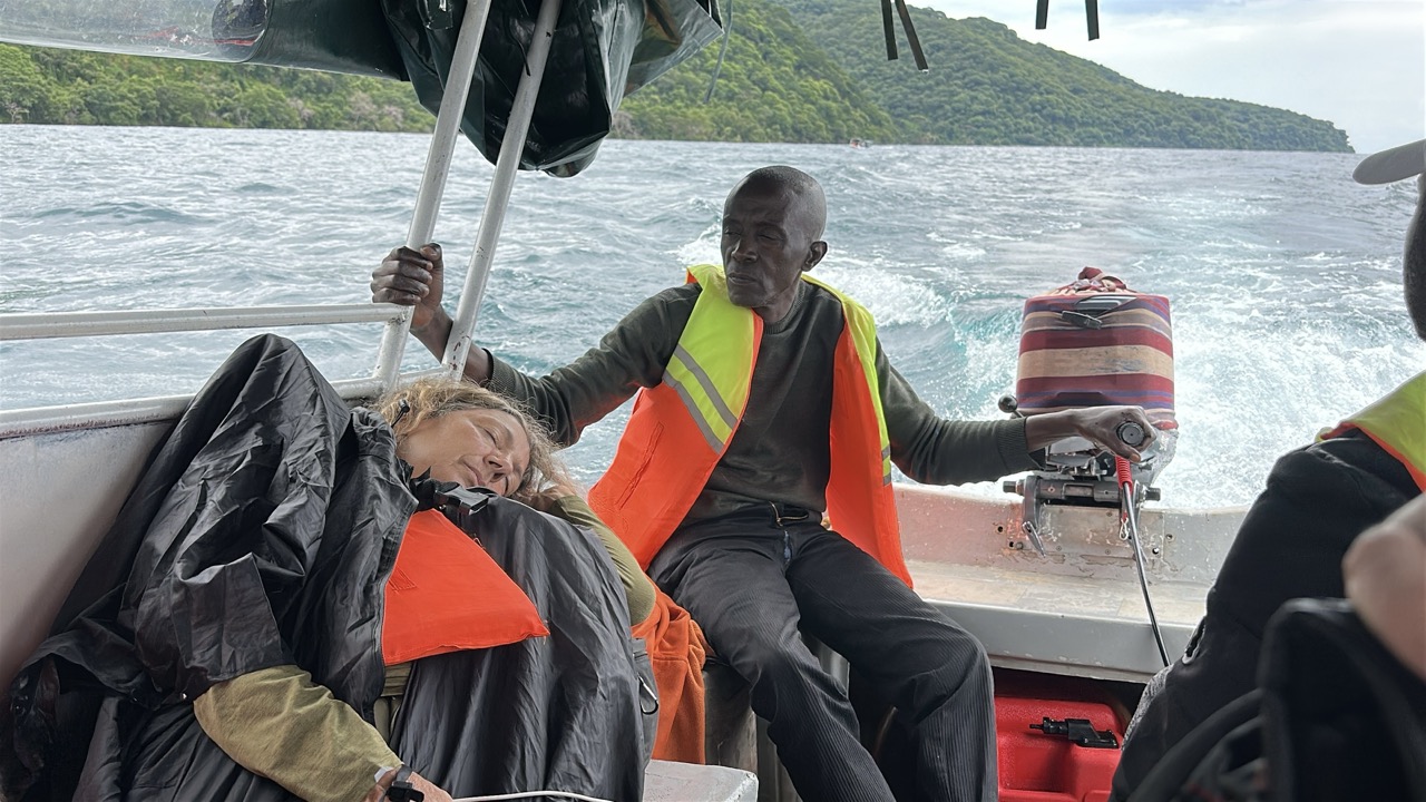 The next day was an adventurous boat-trip to the Gombe National Park. Obed’s line ‘forty minutes’ became a bit of a meme for us, as the reality was closer to two hours and we got more than we bargained for with a storm coming our way, necessitating shelter in a nondescript village which afforded even more interaction with curious locals.