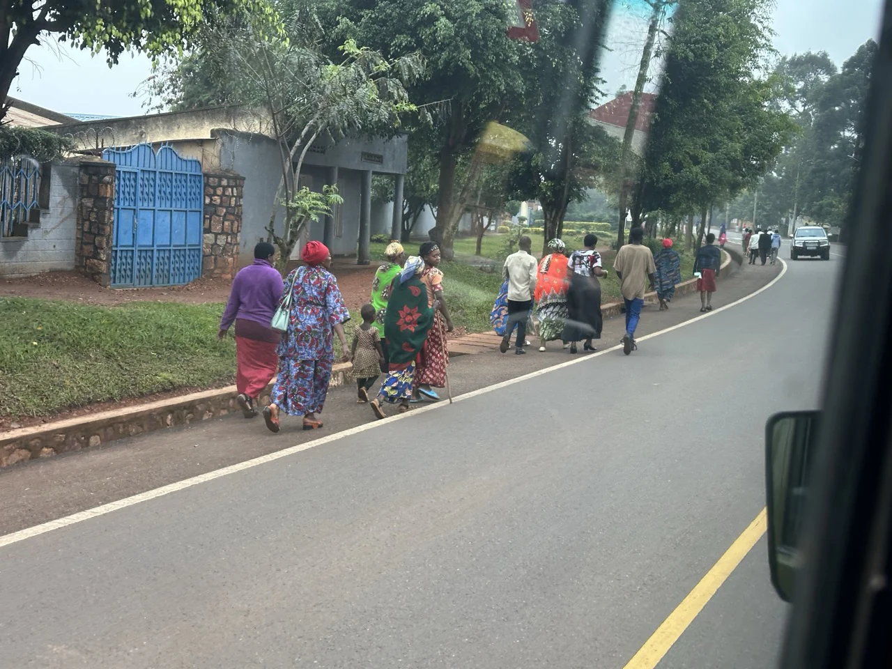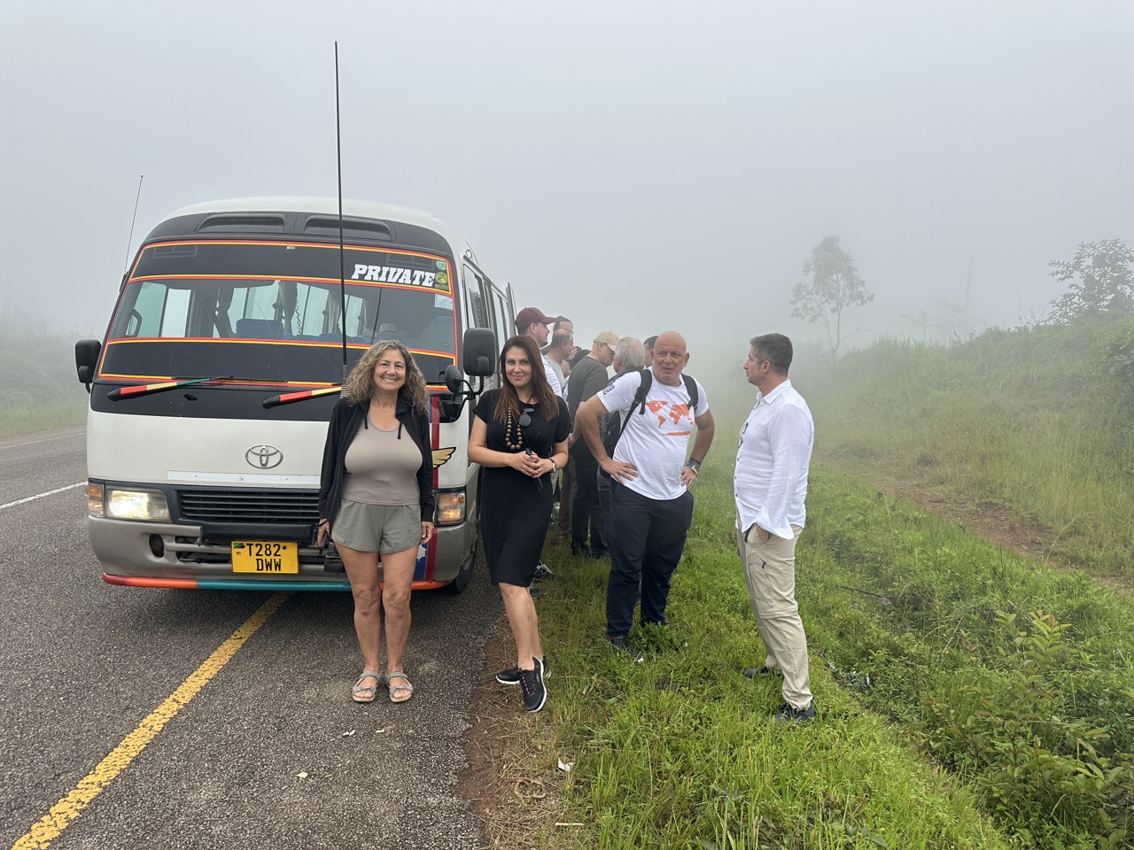 We left the comfort of the unexpectedly pleasant ‘Hilltop Hotel’ behind us and headed into even more unexpectedly deep fog as we drove north to the border with Burundi. The border crossing was much faster and smoother than anticipated considering there were 18 of us – in two hours we were in a world of French where the driving is on the ‘correct’ side of the road….