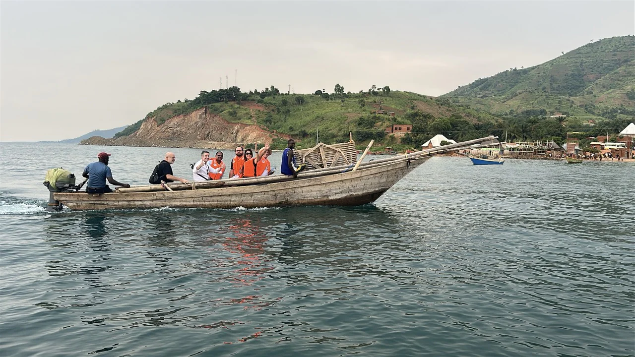 After a night there, we headed south to what would be our last DARE place of the trip – the largest Rwandan island, called Nkombo. We were perhaps the largest travel group to ever visit this forgotten little outpost, where we were treated to a local Congolese-style dance as a welcome. Obed explained that the populations here are mixed. To cap it all in style, the Rwandan border guards at Cyangugu were accommodating to us and let us go up to the bridge that we would have crossed had our plan come to pass. We took photos with the buildings of Bukavu and the DRC flag behind us – the foreboding country retaining its mystique for us as the land we cannot cross into.
