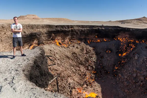 Long story short, I was able to break away from my personal government minder early morning and secretly hitchhike from Ashgabat into the Gobi Desert to search for the crater. With screenshots from Google Earth, GPS and a lucky encounter with a local, I was able to track the place down. Together with a Czech partner in crime we roasted ourselves in the flames, took some pictures and then quickly returned back to our hotel. It was one of the greatest and riskiest challenges in my life that took 15 hours in total, all just for 15 minutes at the crater.