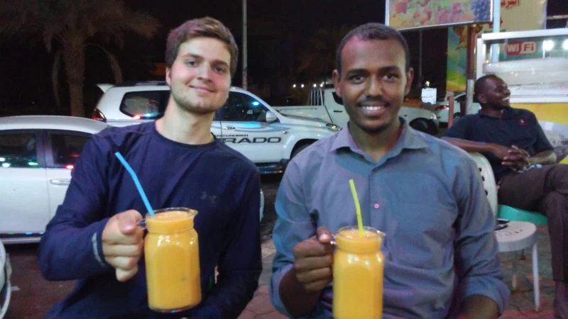 Drinking mango juice in Khartoum, Sudan