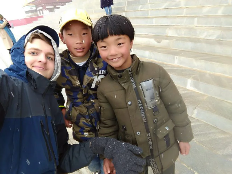 With two Tibetan kids in Litang, Tibetan ethnic area, China