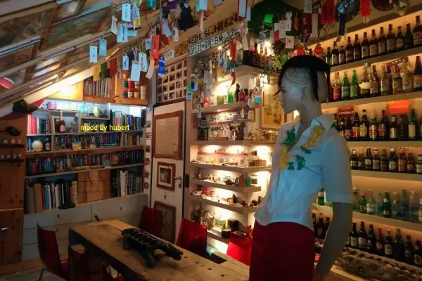 There is a wall full of different beer bottles, I only collected bottles from which I actually had a drink. I carried them home or sent them home. Travelling light is not for me, I almost always have the maximum weight.