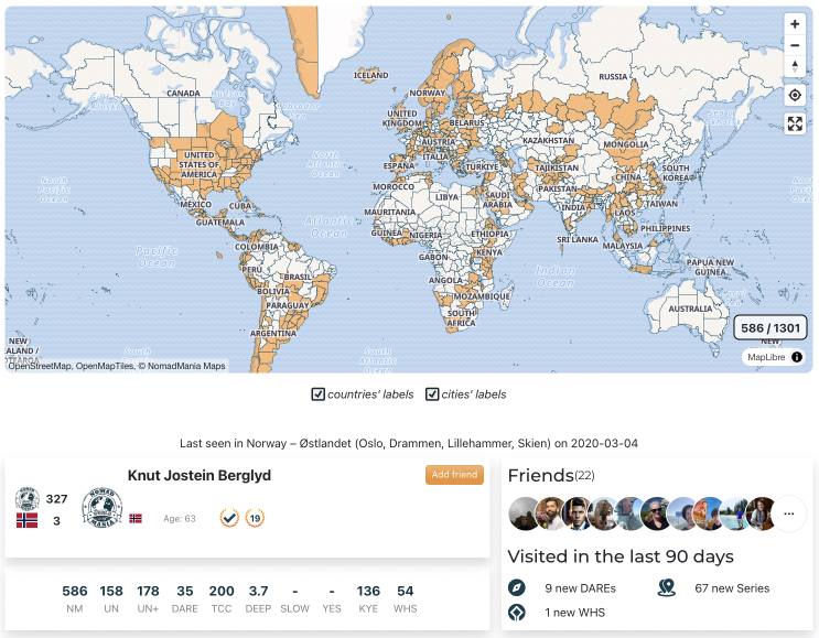 Most people in the world have absolutely no clue as to where our beautiful country is located up in the High Artic North. So, in order to facilitate some global understanding while travelling, I have found the travel app “Countries been” to be helpful as it shows the world as a globe you can rotate. On that globe Norway is still in “a small corner of the world”.