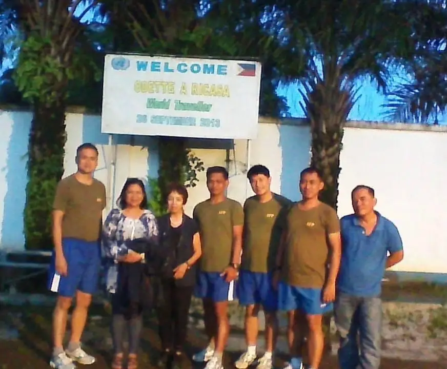 On September 26, 2013, to my surprise, Betty picked me up at my hotel and brought me to the 17th PCL contingent compound. As soon as we got out of the van, there was a band playing at the Mabuhay Hall, with a huge banner: Welcome Odette Ricasa, World Traveler 249 countries.