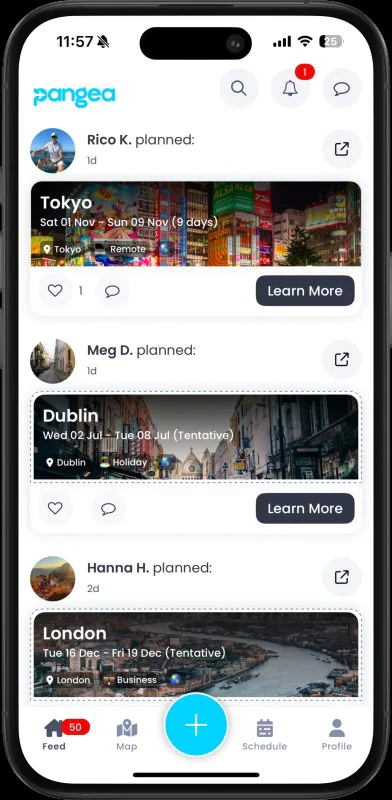 I think the NomadMania community could get a lot of value as frequent travelers. They can add their other NomadMania friends, or others they travel with to keep track of plans and meetup more IRL. We could even create a “Group” in the app for NomadMania travelers to keep track of one another, and for other Pangea members to discover NomadMania. It’s also a great way to share where you’ll be with people back home – my parents love always being up to date about where I am and where I’m going!