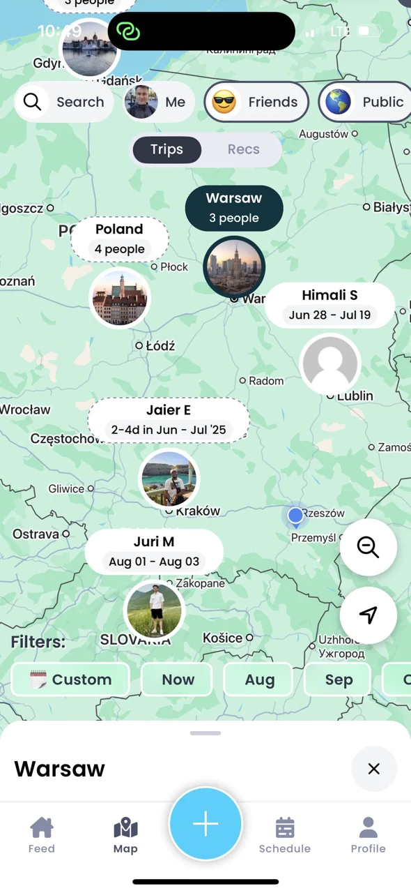 We also have some basic trip planning functionality like an itinerary, and let people share their recommendations all directly in the app. I love being able to take a look on the map and see where my friends are planning to go in the future, because then I can adjust my plans accordingly to join or see them more.
