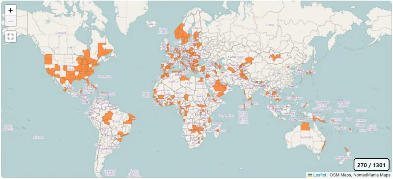 Check Michael’s impressive map of the countries and regions he has covered so far through his NomadMania map: