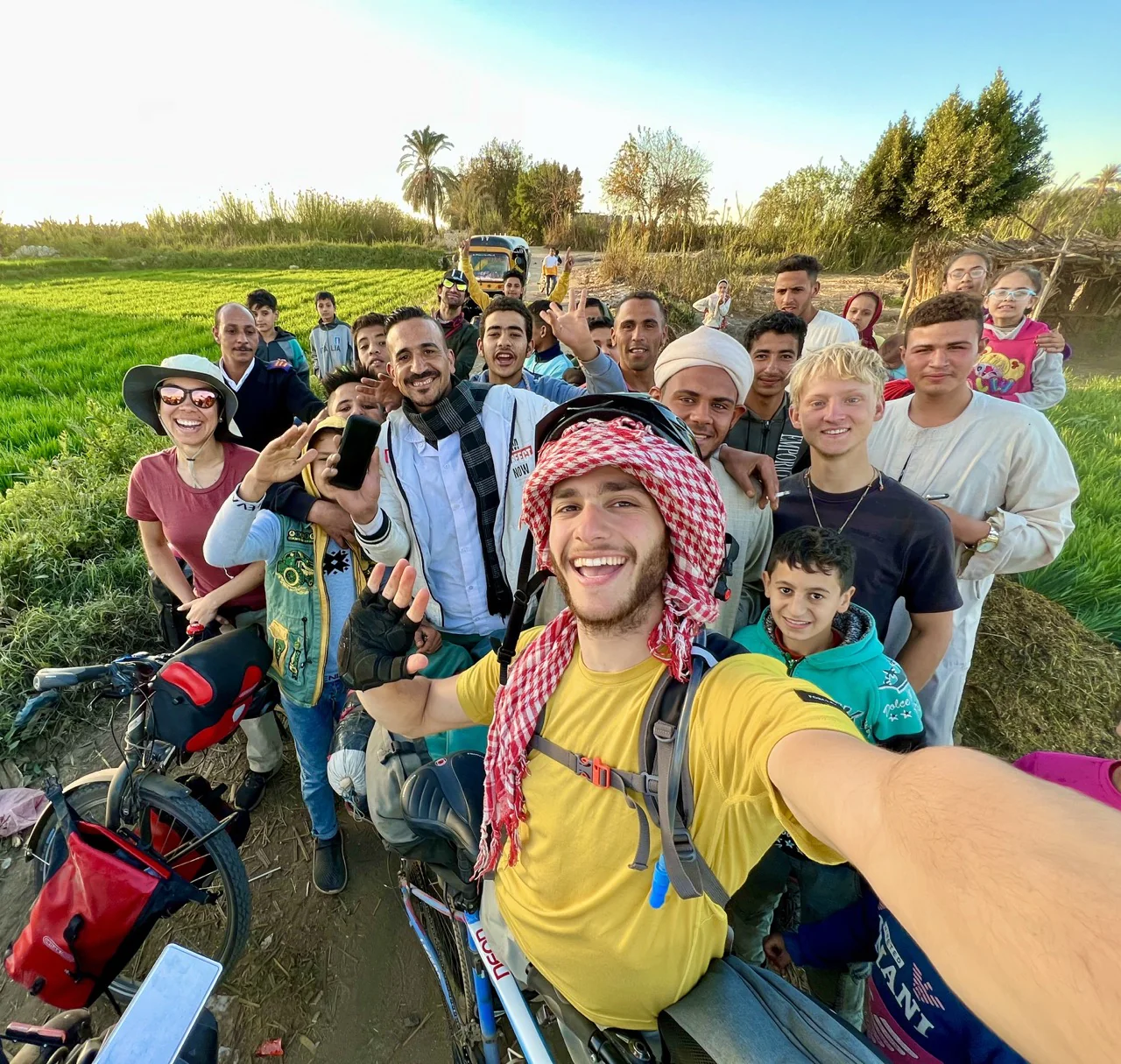 Then there’s Tim. I met the 21-year-old Dutch traveler on my very first morning in Cairo at the Sudanese embassy. He told me about his current project consisting of hitchhiking from Holland to Hong Kong, and since he was passing through Egypt instead of Central Asia, he planned to hitchhike from Cairo to Port Sudan in only a few days. I convinced him to trade his plans of hitchhiking for a month with cycling instead. Two days later, he had bought an $80 bike—aptly named “Legend”—and was picking my brain on how to improve his short-form videos while we were riding along the Nile and having the Egyptian Police chasing us. Tim ended up cycling the first 1,000 km of the journey with me, and after completing his hitchhiking adventure, he rejoined us for the final 1,000 km in Namibia and South Africa. Today, he’s one of the most recognized travel content creators in the Netherlands, and the quality of his videos has improved so much thanks to his curiosity and hard work, and I’m so glad I was part of his creative journey the same way he was part of mine.
