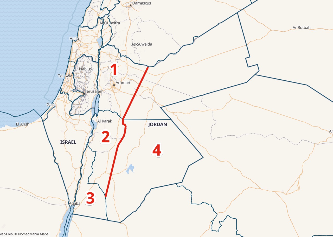 Jordan is technically due for one additional region according to the Optimal Score 3.56. In order to add another region to Jordan, we would be keeping Aqaba/Wadi Rum as is, and then split a Central Jordan (Petra) area, a northern Jordan (Amman/Irbid) area and a big eastern desert area where there is little to see and do.