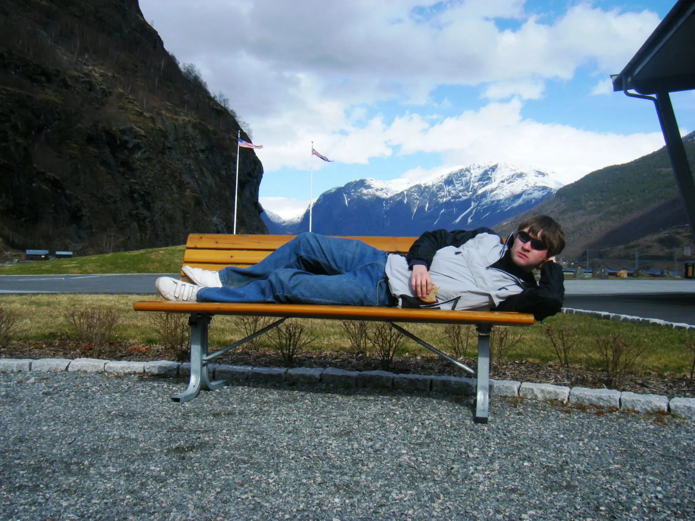 It was April, chilly still back then, and I was standing outside trying to get some pictures, and another guy showed up, much older than me, probably in his late 40s, or early fifties and we had a small chat. I took a picture of him. He took a picture of me. We exchanged our backstories. The only thing I remember from him is that he was working as a gardener, like a landscape designer, which is the cooler name for that profession. In Barcelona, I was just a student from Ukraine. Our ferry arrived near Bergen. That was it. Never seen each other again. Never exchanged any contacts, or emails, nothing.