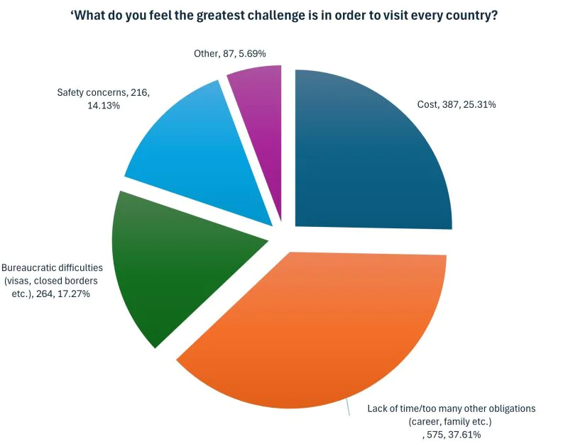In our recent poll, the cost of travel and bureaucratic difficulties were chosen by over 42% of voters as the biggest challenges in visiting every country