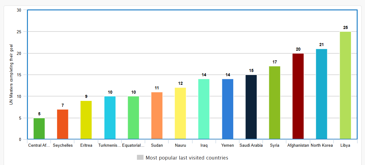 Since NomadMania does keep data on a UN Master’s last visited country, it is interesting to find trends in that. Which countries are generally chosen?