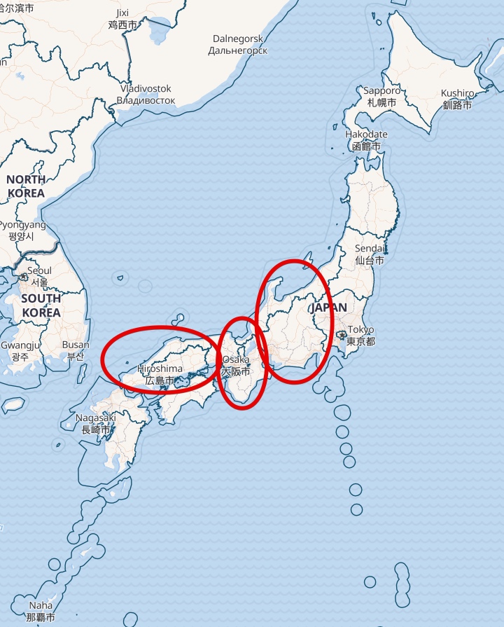 We also redefined Kansai into Greater Osaka (including Osaka, Kyoto, Nara, and Kobe) and the rest of the province.