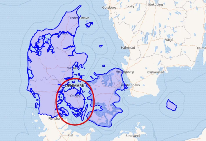 The new region for Denmark is Funen and South Funen archipelago (Odense) which is separated from previously larger Midtjylland, Nordjylland, Syddanmark.