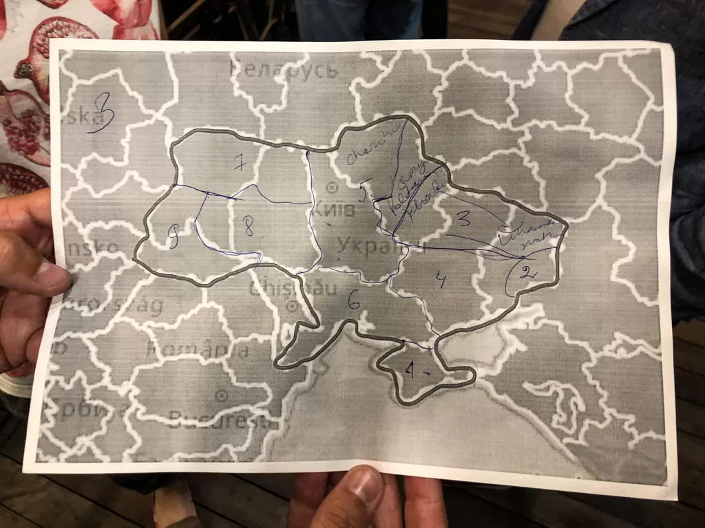 During one of the sessions focused on regions, Orest raised a question regarding the regional division of Ukraine. Having worked for many years as a tour guide, with a strong interest in history, culture, and geography, and possessing deep knowledge of his home country, the NomadMania division of Ukraine at the time made little sense to him.