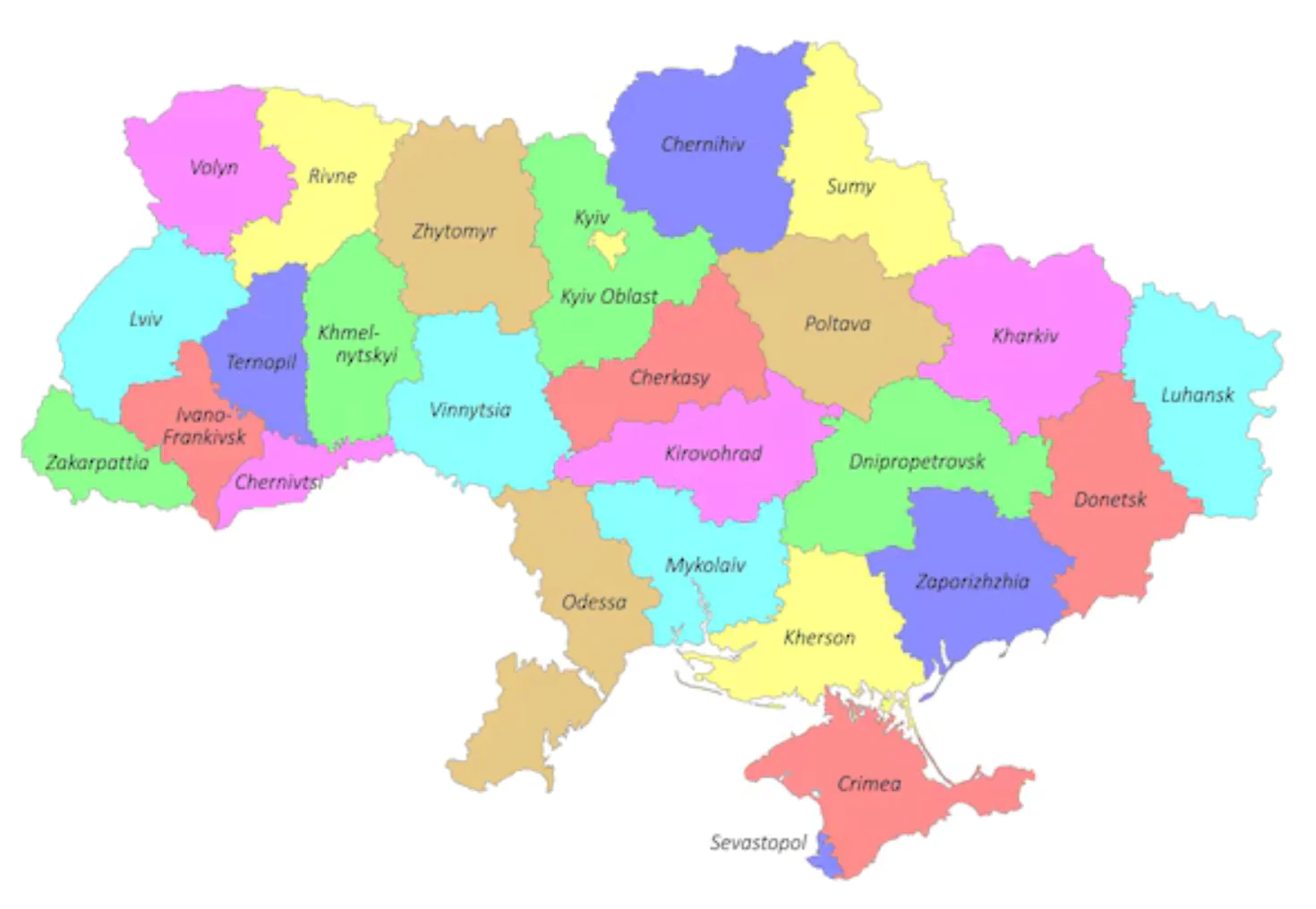 The official political and administrative division of Ukraine.