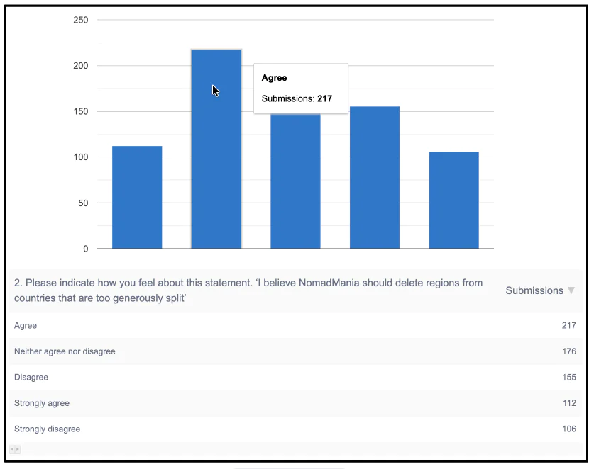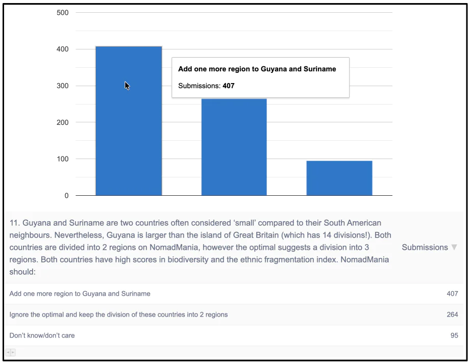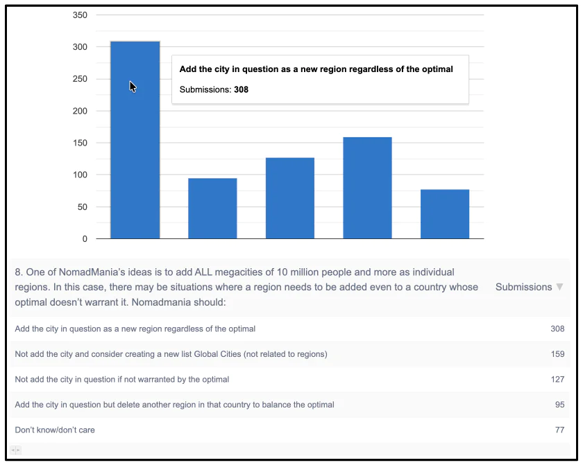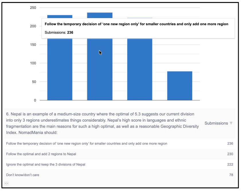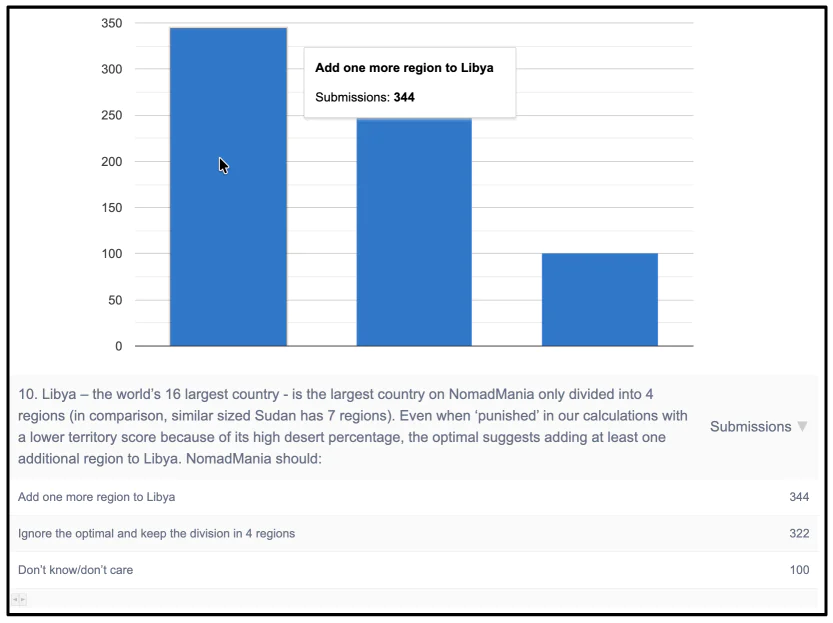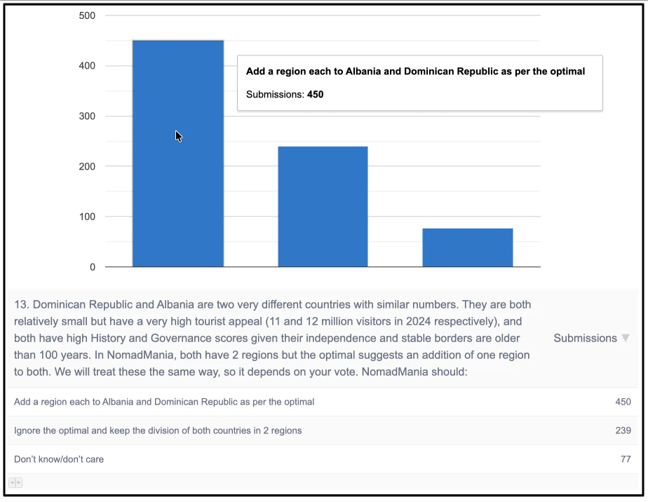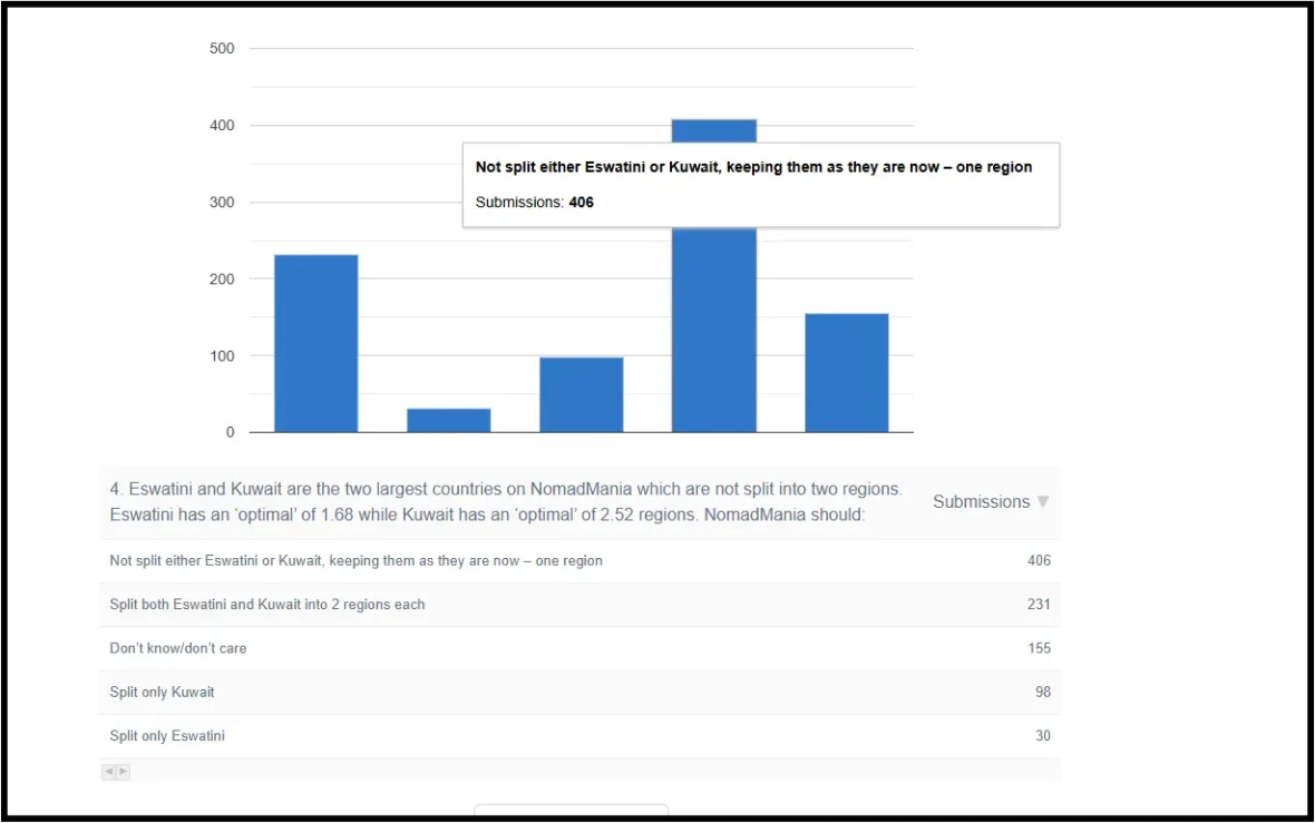 In the first question “The Optimal Score for Regions has shown that some countries are seriously under-split in terms of divisions on the NomadMania Masterlist” we generally offered three possible responses.