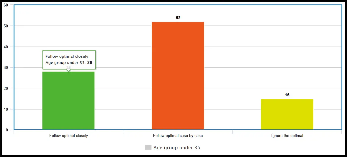 The general results here were – 53% ignore the optimal, 39% follow it.
