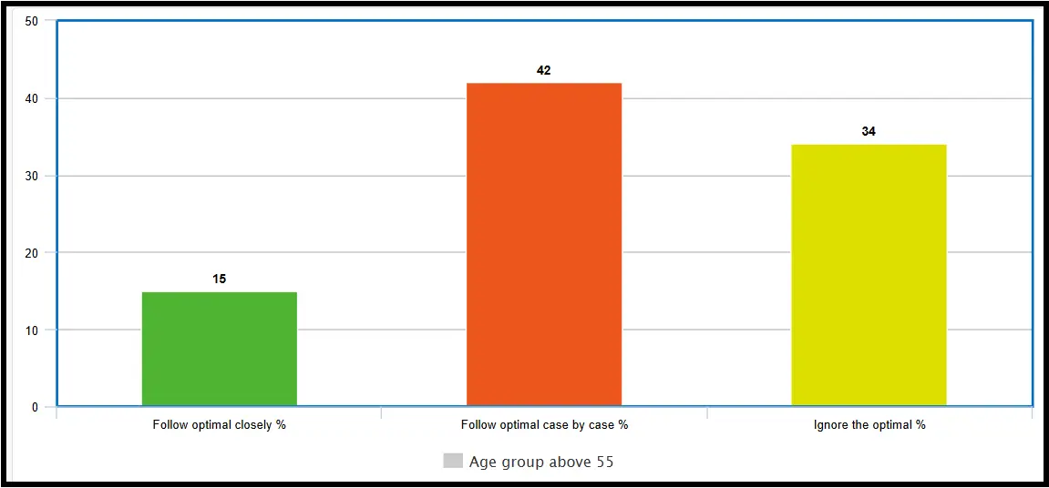 However, for travellers over the age of 55, 42% opt for the case-by-case option, followed by a desire to ignore the optimal by 34% and only 15% want us to follow the optimal closely.