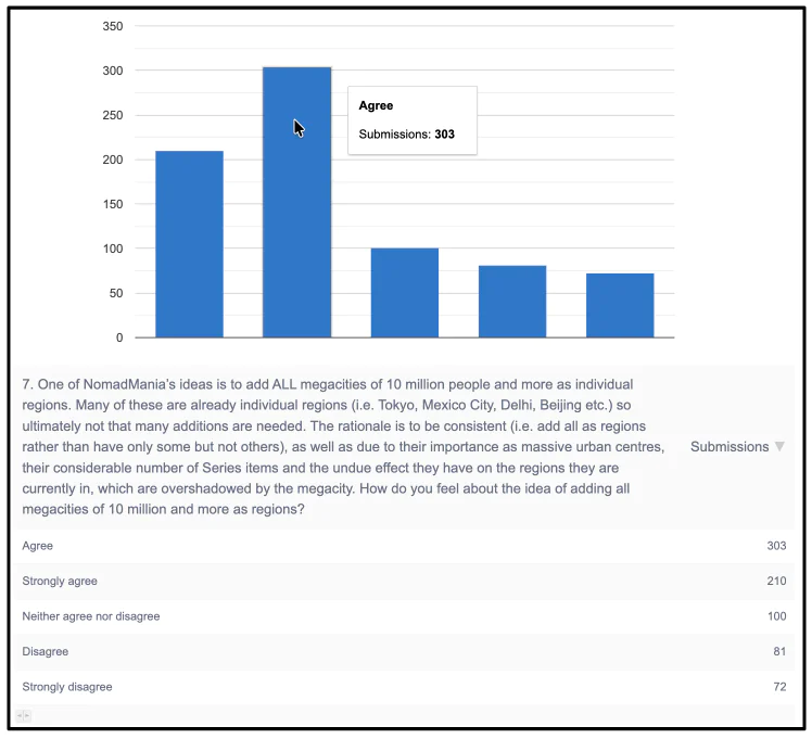 One of our main questions was the idea of adding megacities as standalone regions. This idea was broadly accepted in the poll, with the ‘agree’ and ‘strongly agree’ camps being the two most popular answers with the highest margins of our poll, at 67%, of which 28% strongly. Only 20% disagree with this idea.