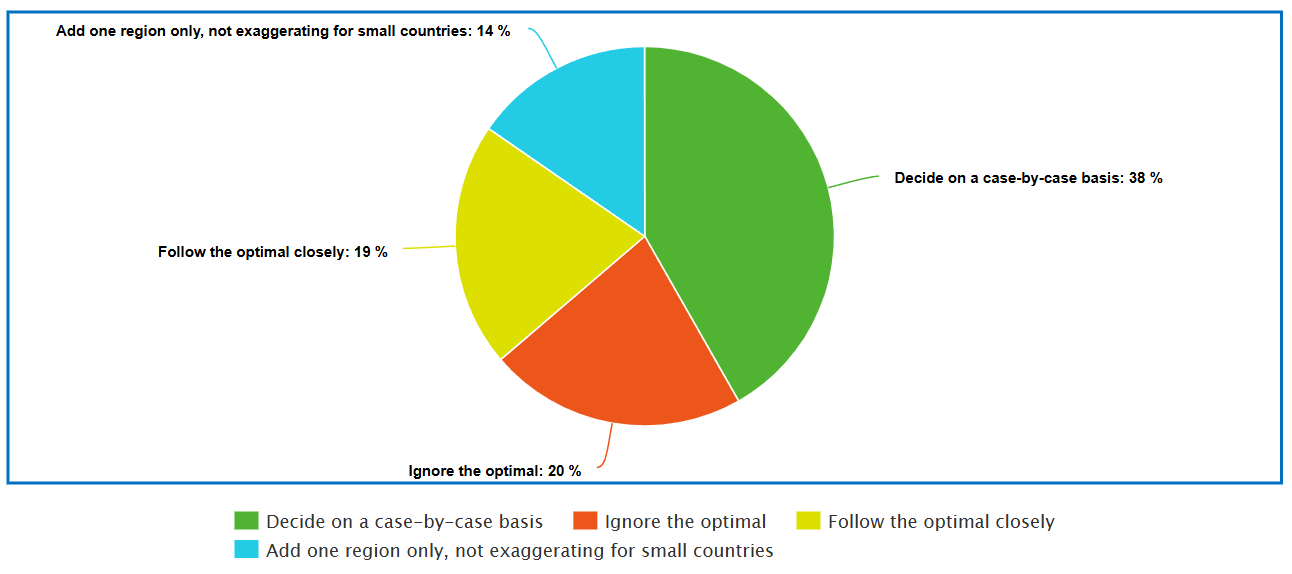 Somewhat encouragingly though, less than a quarter of respondents reject the optimal overall, with two-thirds broadly accepting it, and therefore this will be our main guide in terms of some of the bigger countries where additional regions are implied by the numbers.