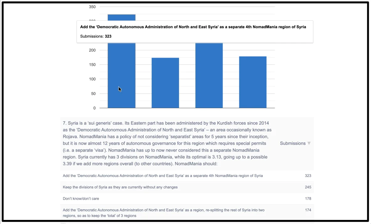 What we may well conclude is that Azerbaijan and Syria will likely be the first countries to receive an additional region once we start this process in 2026 – and this is following your vote and a clear margin of support for this overall. We can also permanently ‘freeze’ any ideas of additions to Antarctica or Greenland based on the very clear ‘no’ vote.