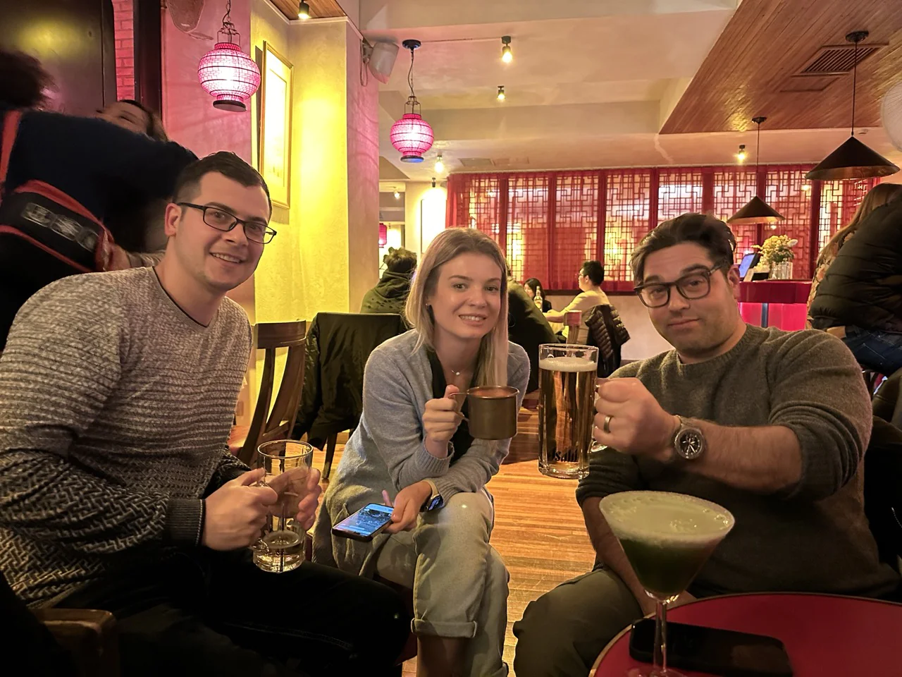 The meeting started at 5 PM with casual drinks and introductions. Conversations flowed, with people swapping seats and sharing some of their best travel experiences.