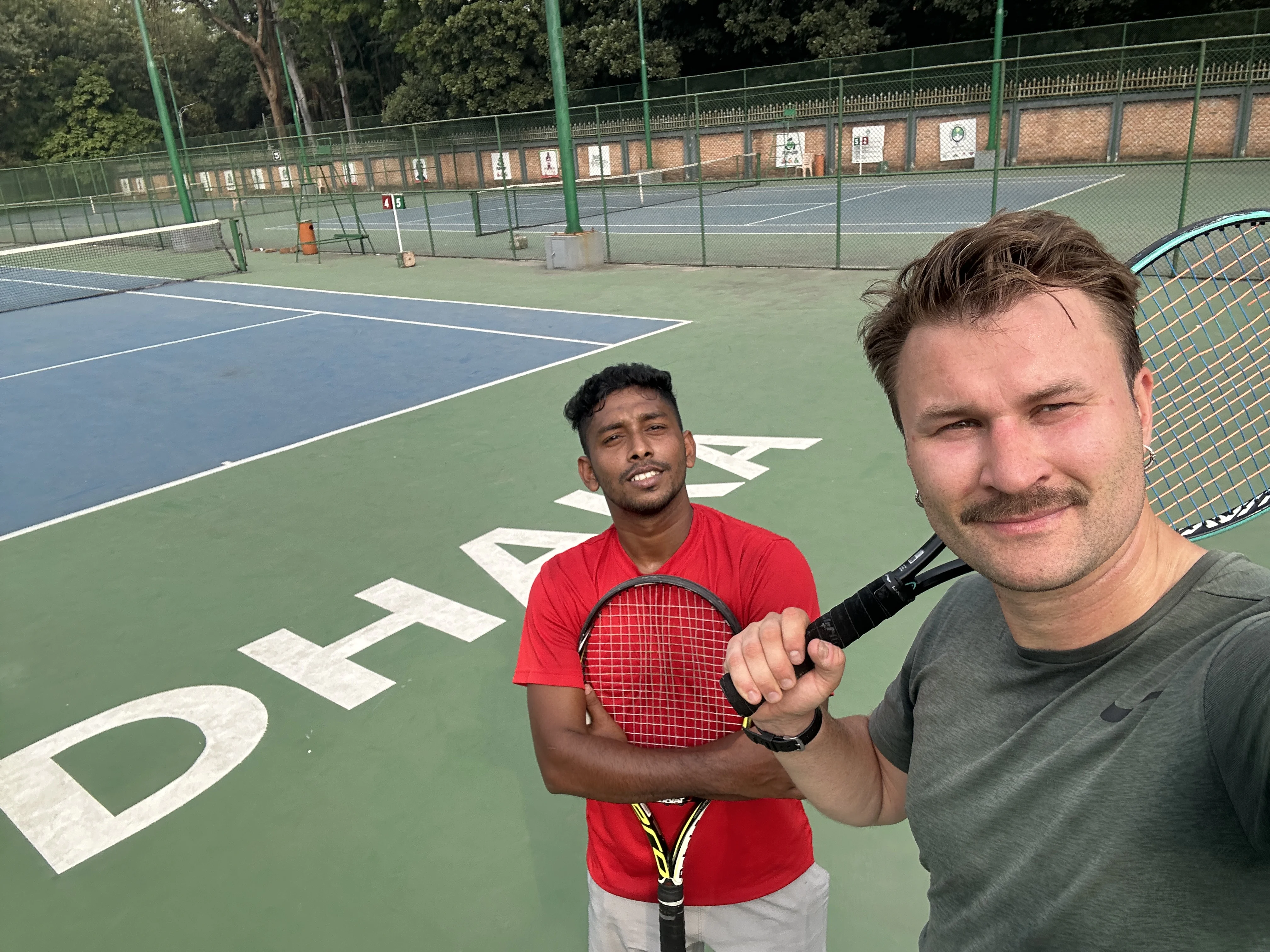Interestingly enough it’s much easier to arrange a match in developing countries than in the modern economies. Once a foreign guy shows up in the tennis club in Dhaka or Yaounde this appears to be a really big thing.