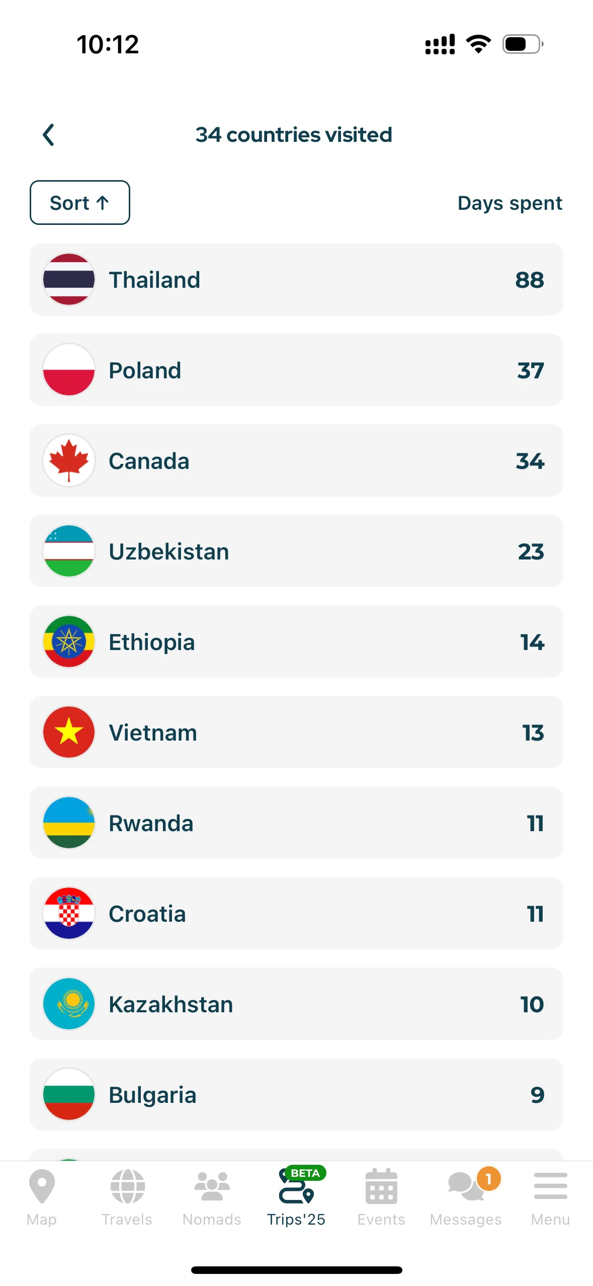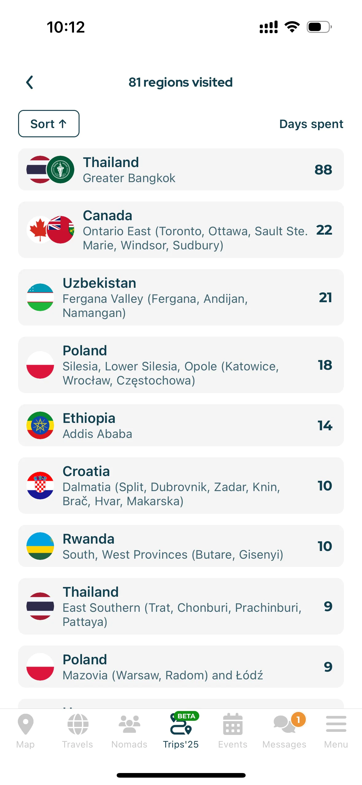 Once entered, you will receive a clear summary of your 2025 travels: